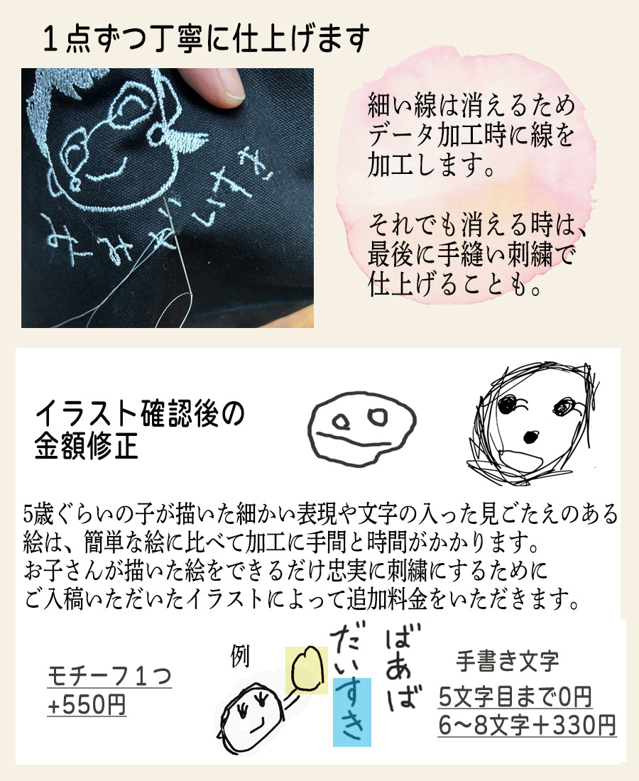 複数刺繍を希望するときは、別途料金が発生いたします。