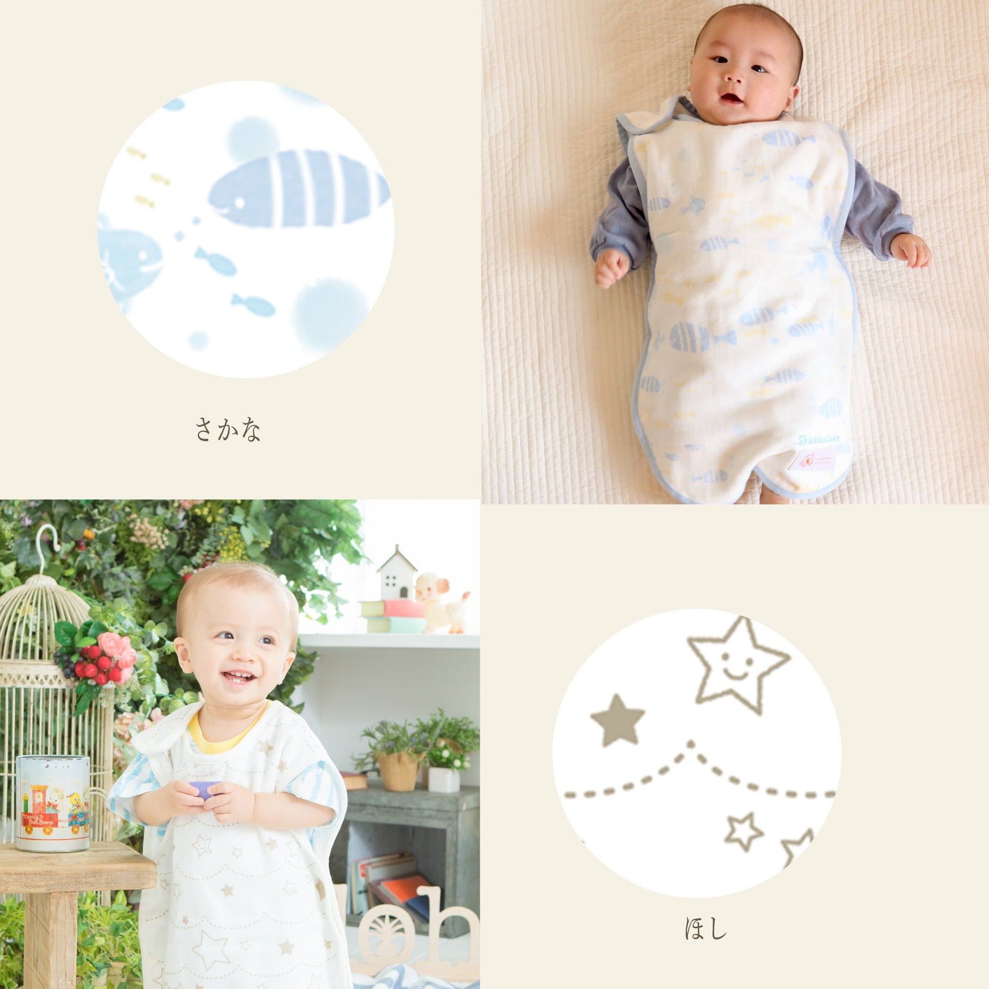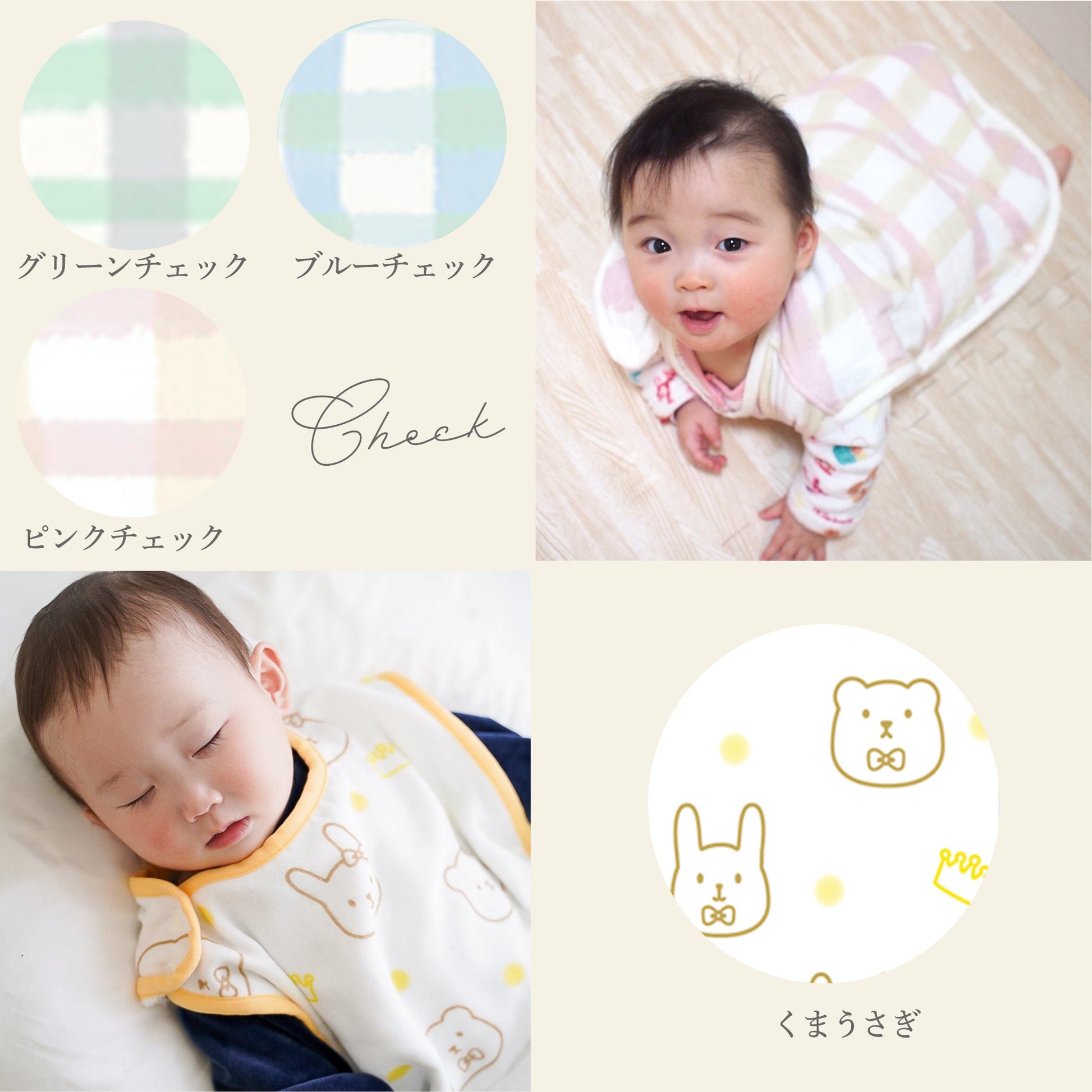 新生児やベビーの足先まで包む、長めの着るケット、薄手のかいまき(寝具)としてあかちゃんの眠りをサポートします。